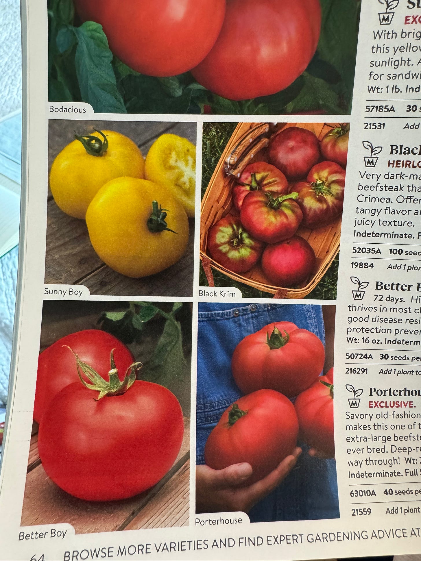 Let me start with how NOT to choose tomatoes….by a picture in a catalogue! More than a few gardeners have been enticed by a pretty picture. The most important part of a seed catalogue is the description of disease resistance. This is the reason that my favorite catalogue is Johnny’s Seeds, they do an impeccable job of laying out a seeds resistance. The point of growing your own food is to eat it, right?? So, let me encourage you to grow something that will thrive in YOUR garden. Because when it thrives, you will eat more of it.